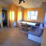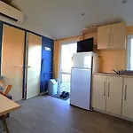 Mobil Home Coeur De Vendee Puydufou Hellfest, som ligger 3 km från Retenue de la Bultiere, erbjuder en kokvrå på en terrass för en trevlig vistelse.